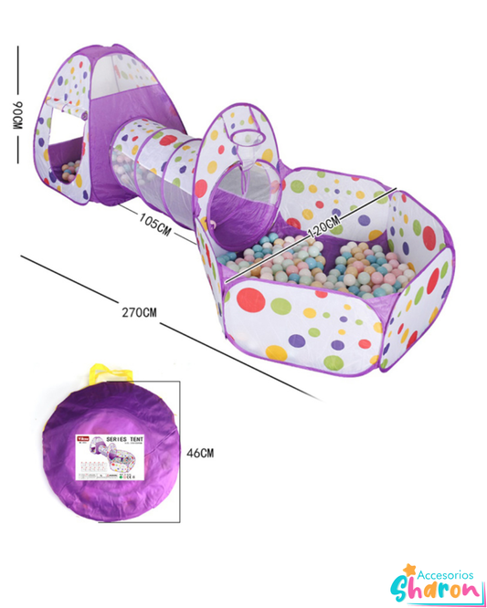 Carpa + túnel + piscina de pelotas.