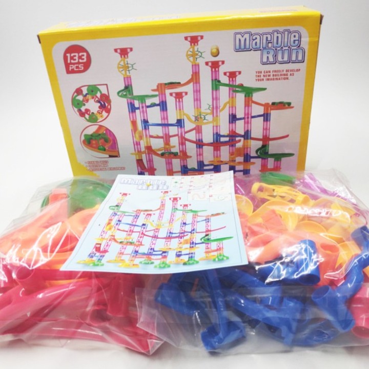 Juego de armar toboganes de pelota de 133 piezas de alta calidad, diversión sin fin para que sus hijos pongan las metras a correr a lo largo de las pistas.