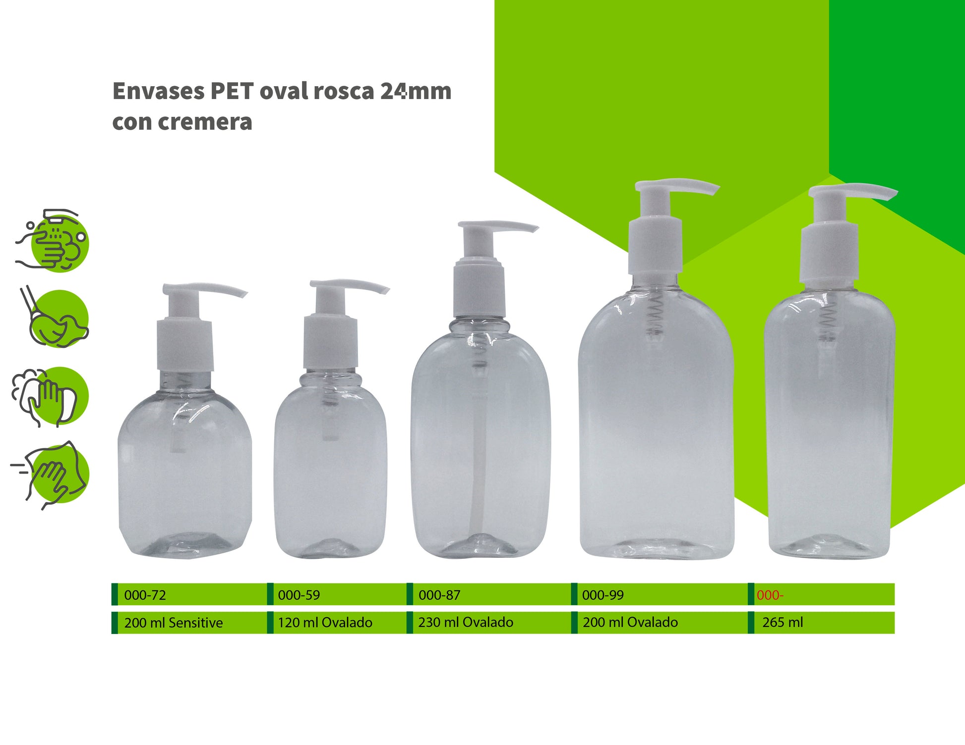 El envase pet oval con cremera es un producto ideal para el hogar o el trabajo, ya que su válvula permite dispensar la crema de forma fácil y precisa. Su diseño ovalado le da un aspecto elegante y moderno, y su material pet es resistente y reciclable. Este envase es perfecto para almacenar y servir cremas,  producto líquido o semisólido que requiera una dosificación adecuada.
