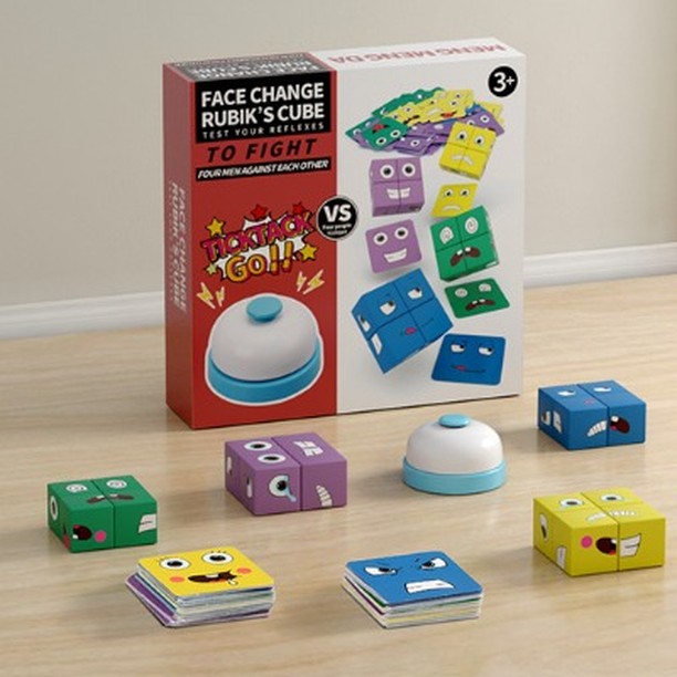 Los cubos de Rubik cara intercambiables son 16 cubos de madera con diferentes formas de caras para intercambiar a su vez tiene una barajitas que indican la forma que deben colocarse los cubos . Están recomendada para niños de 3 años en adelante