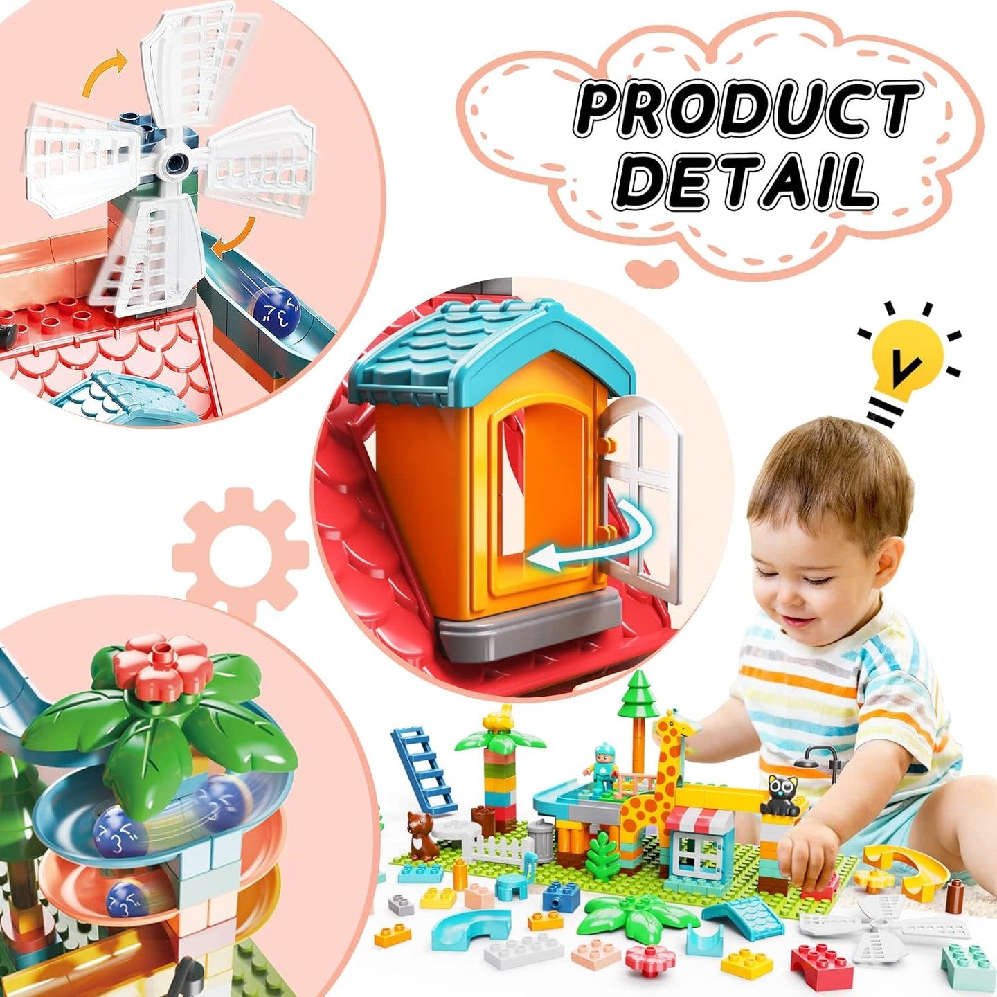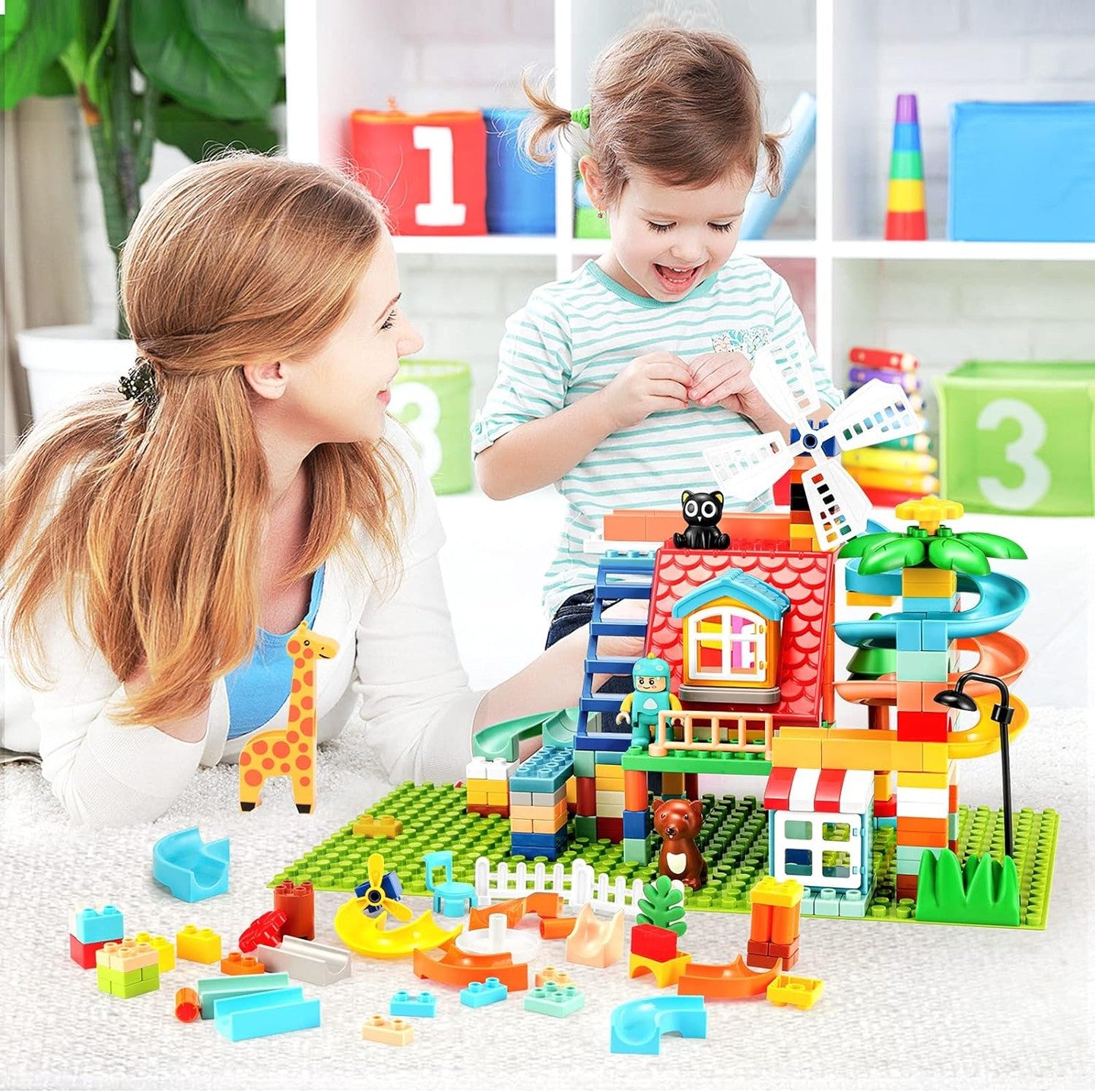 20 tipos diferentes de piezas de acción, 30 piezas de escena y 5 animales para un tiempo de juego más emocionante y divertido.