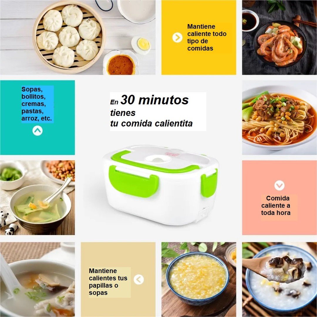 • 【Una vez conectado, el calentador portátil de alimentos comienza a calentar tus comidas. El uso del termostático original de PTC puede mantener tus comidas caseras calientes lo suficientemente tiempo. La caja eléctrica del calentador de alimentos utiliza la doble función de más seguridad y aislamiento térmico.